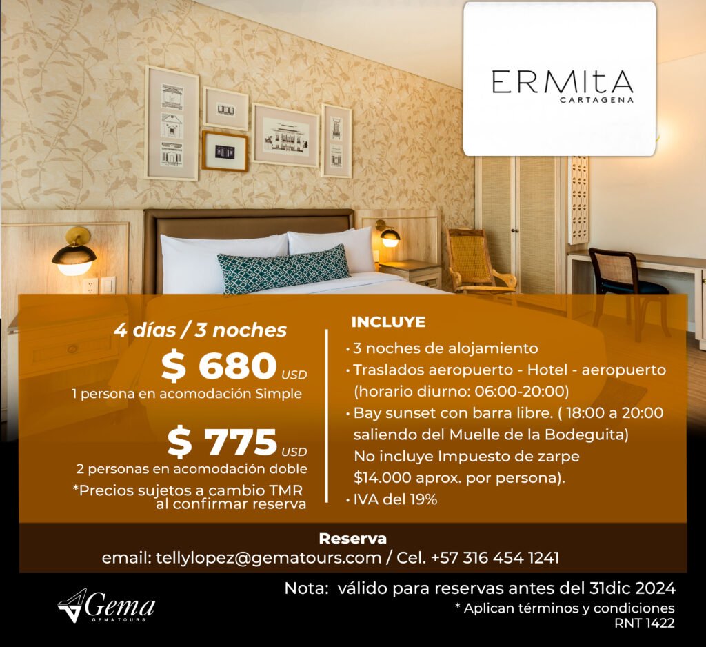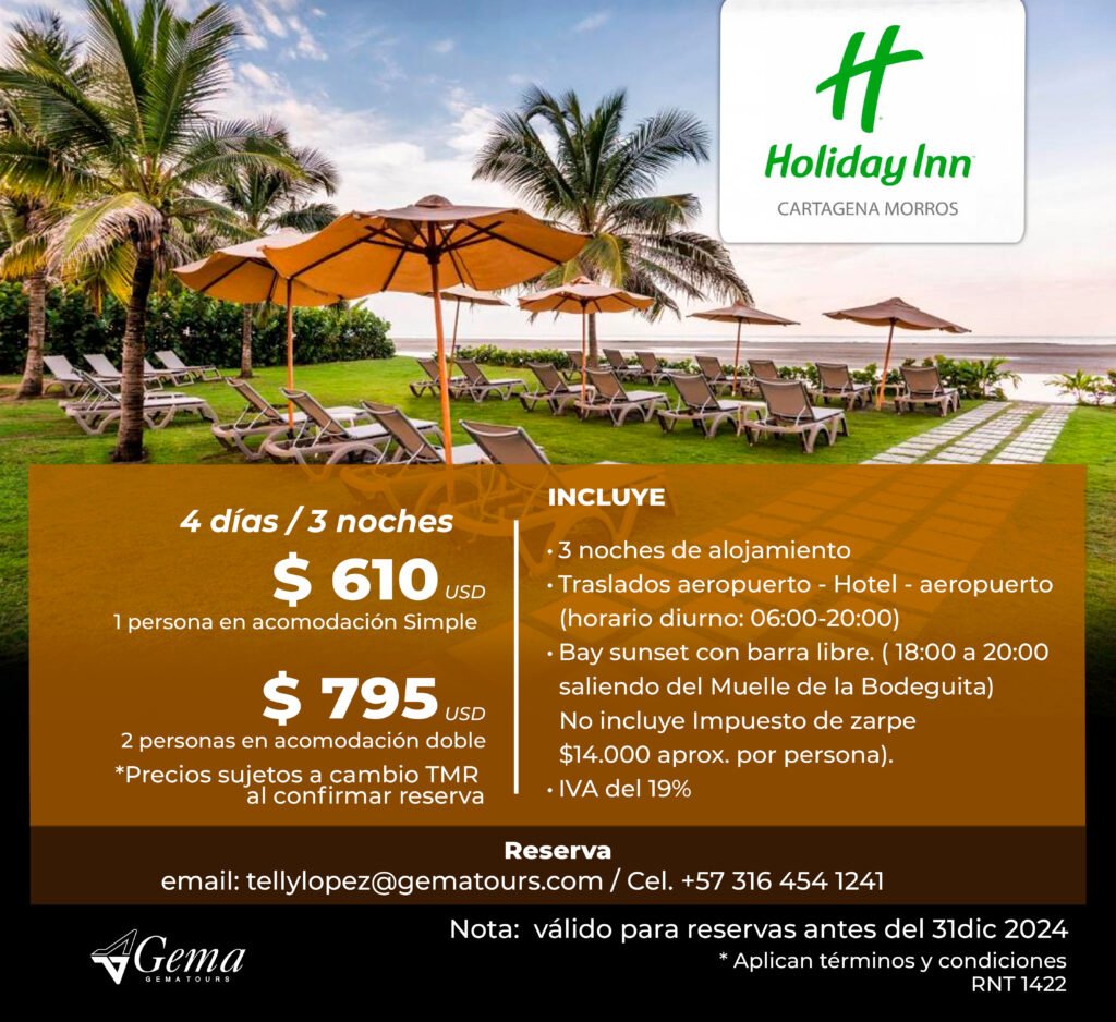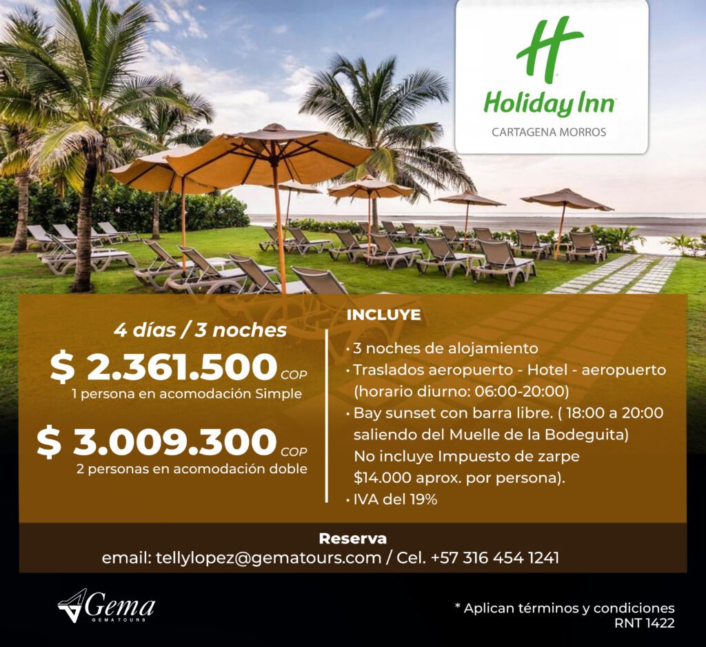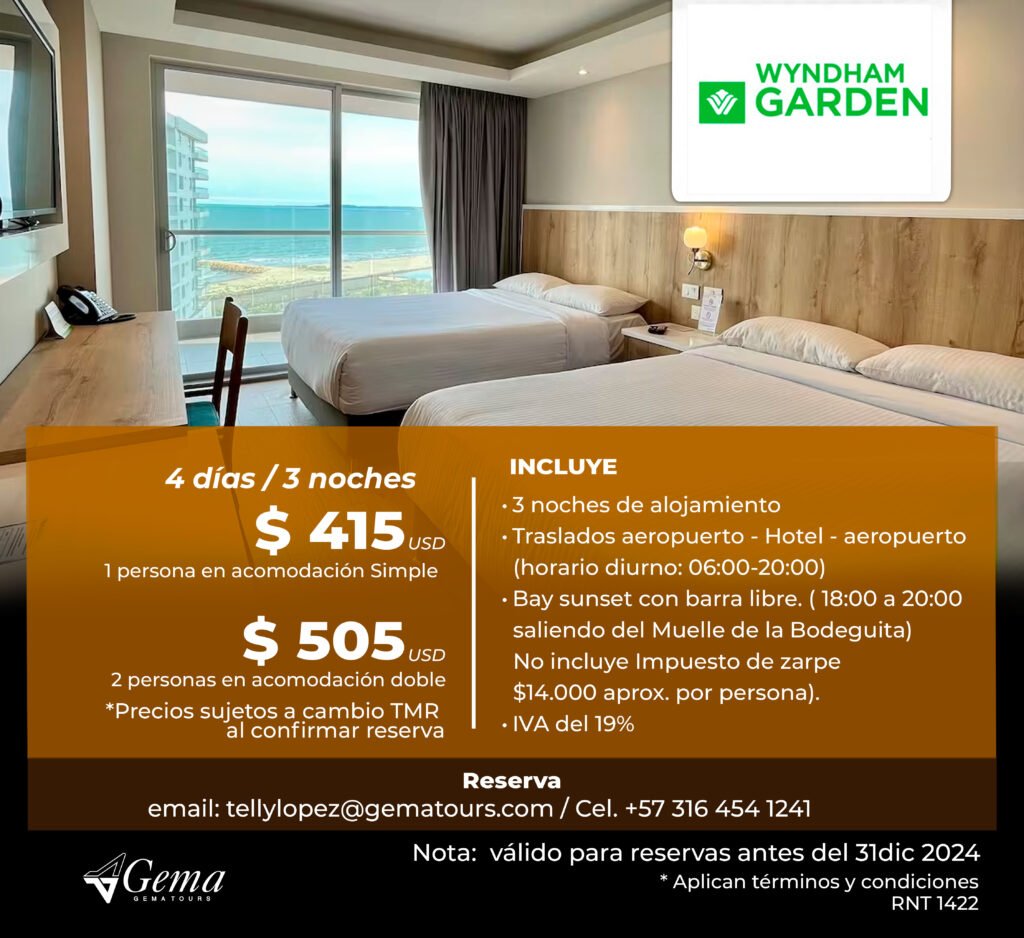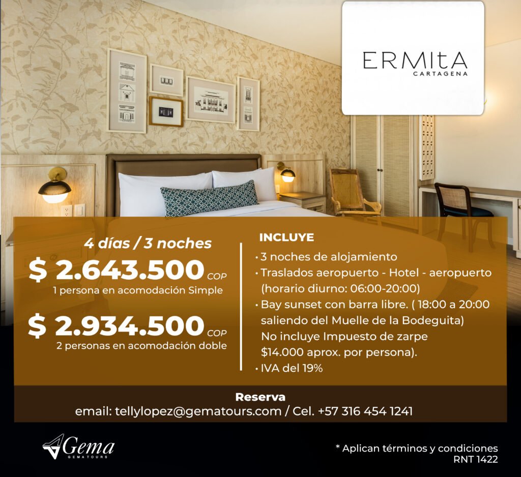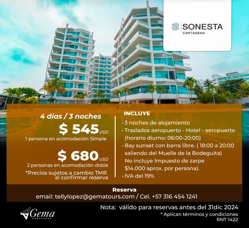 Otros Hoteles ¡Encuentra la opción perfecta para tu presupuesto!Llámame hoy y asegura tu estadía para el evento. ContáctoTelly LopezCelular: (+57) 316 454 1241tellylopez@gematours.com Tarifas en Pesos COP Tarifas en Dolares USD